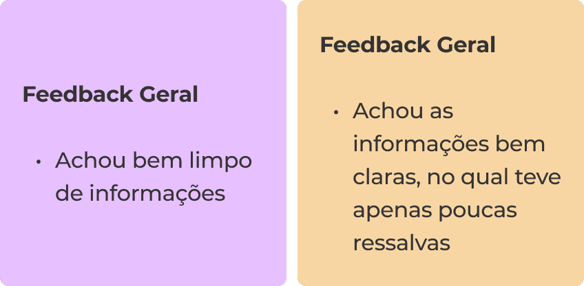 Somente a visão geral sobre os testes de usabilidade não seriam o suficiente para entender os principais pontos a serem ajustados. Era necessário também, entender as similaridades nas quais os participantes tiveram dúvidas, e para isso, utilizei a técnica “Affinity Map” (Mapa de afinidade) para agrupar as anotações dos participantes com base nos itens presentes na interface. Com isso, eu poderia entender quais os principais itens que os participantes tiveram dúvidas.