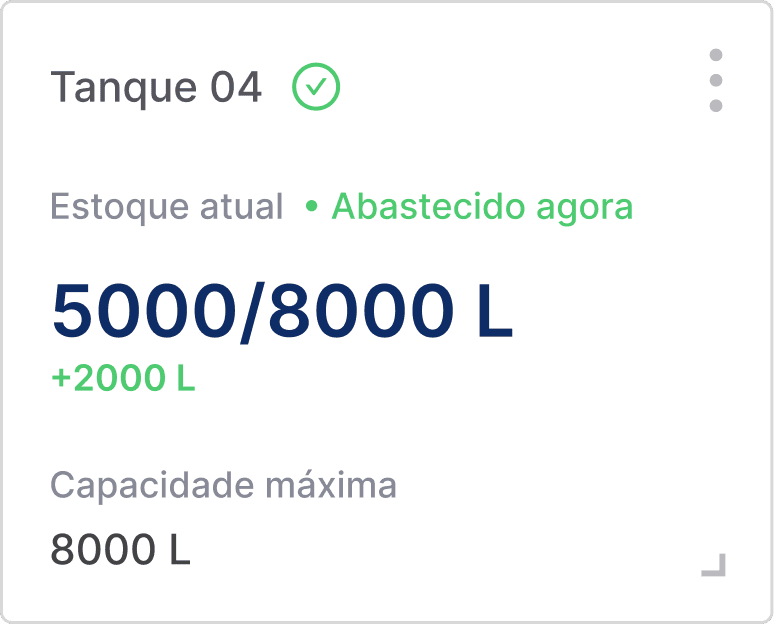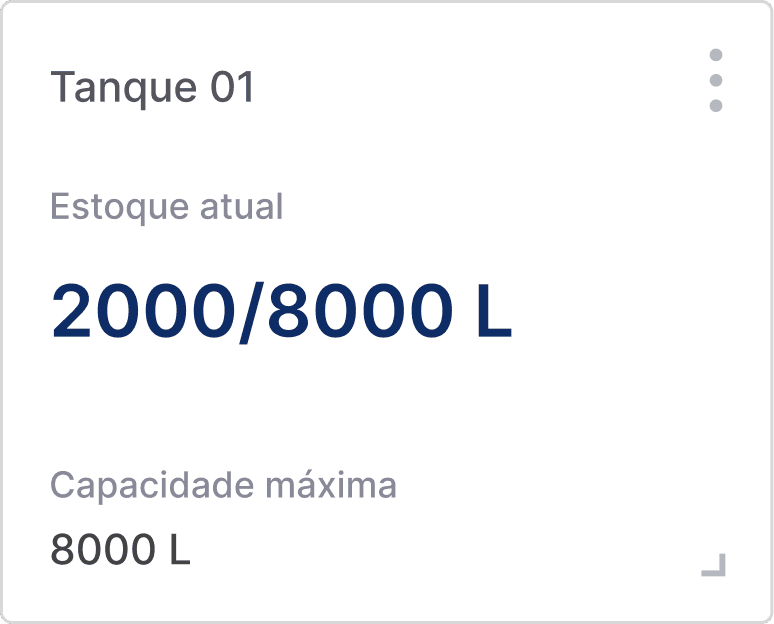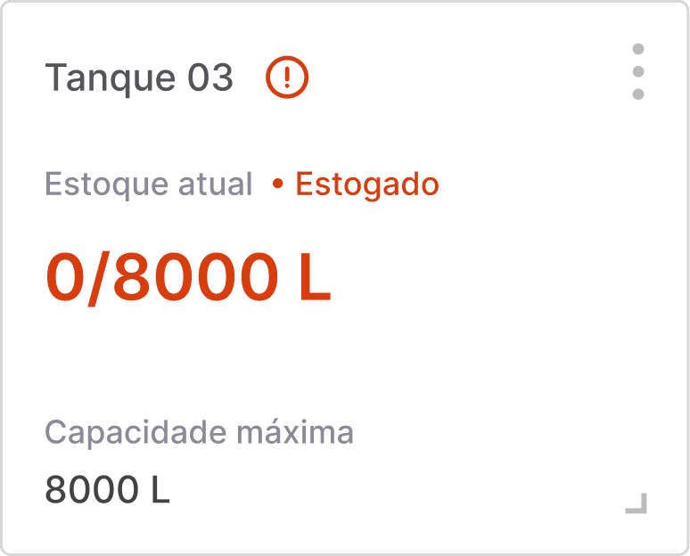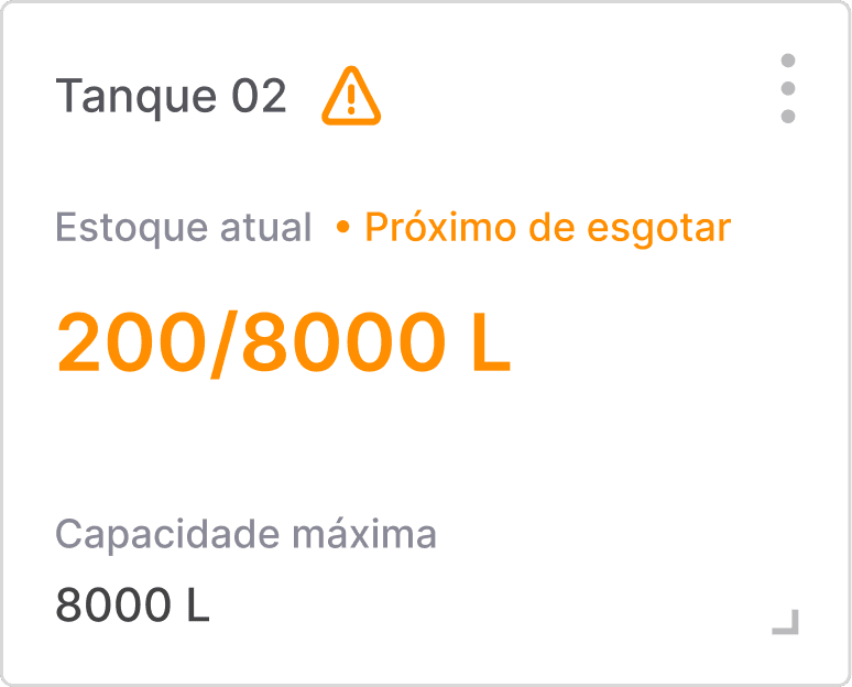 Este estado ocorre quando o estoque de um tanque está próximo de esgotar. É acionado um feedback visual de alerta, para que o usuário esteja ciente de que o determinado tanque necessita de um abastecimento.